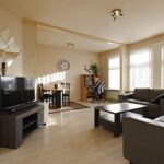De doorgebroken woonkamer ligt aan de voorzijde van de woning en biedt een vrij uitzicht over de Watervlierstraat.