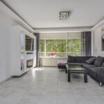 De royale en lichte woonkamer heeft een prachtig vrij uitzicht op het groen en staat in verbinding met een zijkamer. Vanuit de woonkamer is er toegang tot een van de slaapkamers met vaste kast en toegang tot het balkon.