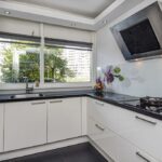 De moderne keuken aan de galerijzijde is uitgerust met een zwart natuurstenen (composiet) werkblad, RVS-afzuigkap, gas wokbrander, inductiekookplaten, oven, combi-oven/magnetron, ruime vriezer (7 laden), grote koelkast en glazen achterwand.